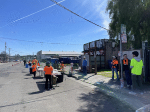 marathon runners at mile 11 by serving water and electrolyte drinks.